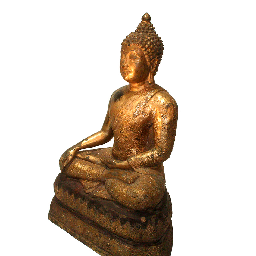 Diese Figur zeigt Buddha in der Bhumisparsha-Mudra, der Geste des Erdeberührens – als Zeichen seiner Erleuchtung.
