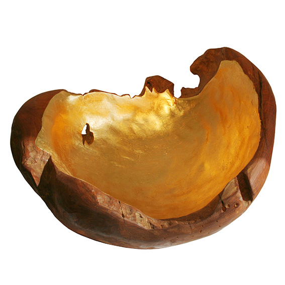 Teakholz stammt aus den Tropen Süd- und Südostasiens und ist für seine markante Maserung, Widerstandsfähigkeit und warme Farbe bekannt. Jede Teakholzschale erzählt durch ihre Struktur ihre eigene Geschichte – kein Stück gleicht dem anderen. Besonders edel wirken unsere Modelle mit Schlagmetallveredelung in Vergoldertechnik – sie erhalten dadurch eine elegante Ausdruckskraft und zusätzliche Wertigkeit.
