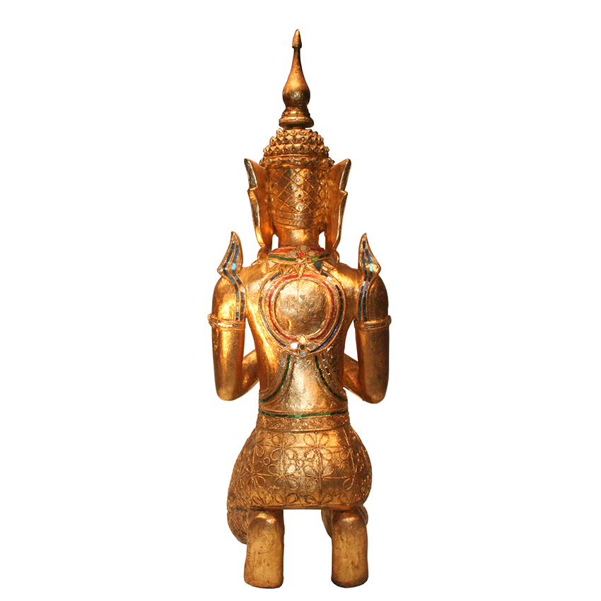 Wie aus einem thailändischen Wat entsprungen, erstrahlt dieser Thepanom Engel in leuchtendem Gold, geschmückt mit bunten, schimmernden Steinen – ein Symbol gelebter Spiritualität und tief verwurzelter Tempelkunst. In ehrfurchtsvoller Gebetshaltung verkörpert er Achtsamkeit, Reinheit und die stille Präsenz des Göttlichen.