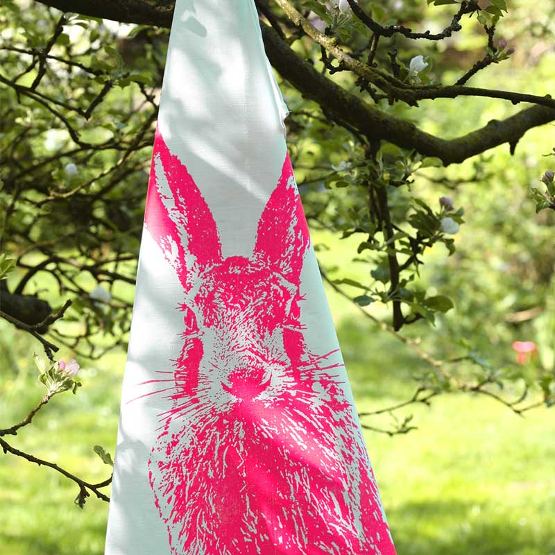 "Hase in neonpink" - Geschirrtuch von Frohstoff