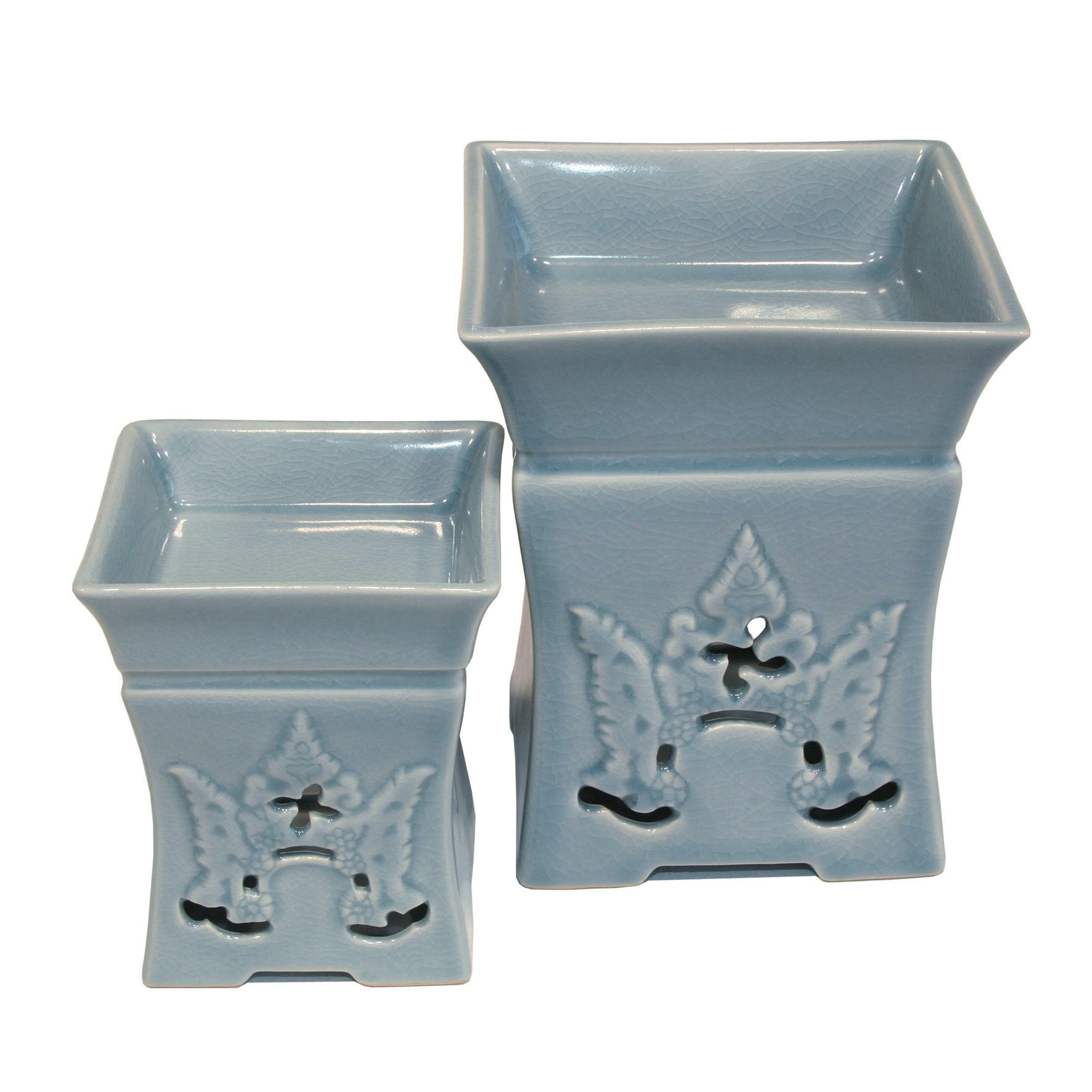 Diese Aromaöl Lampe wird auch im berühmten Oriental Hotel in Bangkok in nahezu allen Räumen verwendet, um seinen Gästen auch in olfaktorischer Hinsicht das Beste zu bieten. Sie wird aus der hochwertigen thailändischen Celadon Keramik hergestellt. Die hohe Einfüllmenge von Wasser vermeidet ein schnelles Trockenbrennen.