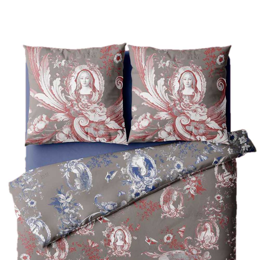 Die Bettwäsche „Linge de lit Simonetta“ von Voglio Bene verwandelt Ihr Schlafzimmer in eine Bühne zeitloser Eleganz. Inspiriert von klassischer Renaissance-Bildsprache, zeigt das Design ikonische Frauenporträts, florale Ornamente und fein geschwungene Details – kunstvoll arrangiert auf edlem Stoff. Eine Komposition voller Ruhe, Anmut und kultivierter Sinnlichkeit.