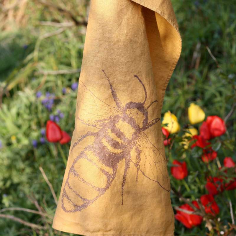"Biene kupfer" - Geschirrtuch Leinen honiggelb von Frohstoff