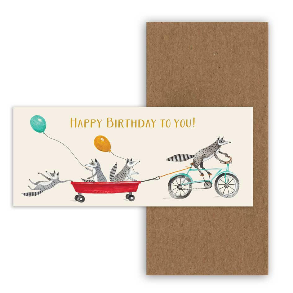 Große Glückwunschkarte "HAPPY BIRTHDAY RACCOONS" von Hester & Cook