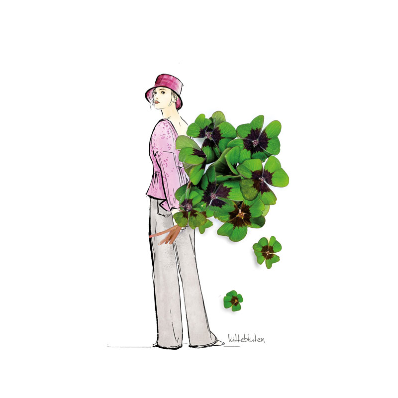 Grußkarte / Kunstkarte "Glücksklee" von Lütteblüten
