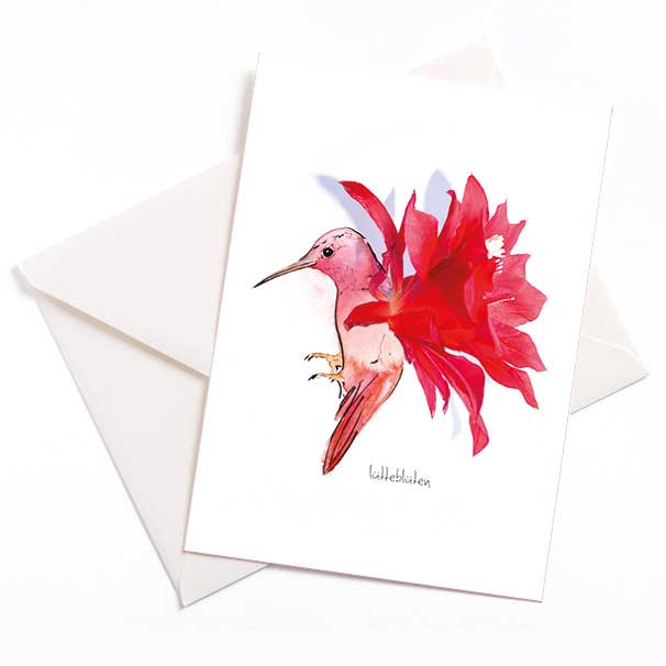 Kunstkarte / Grußkarte "Kaktus-Kolibri" aus der Papeterie von Lütteblüten by Gabriele Ampt.