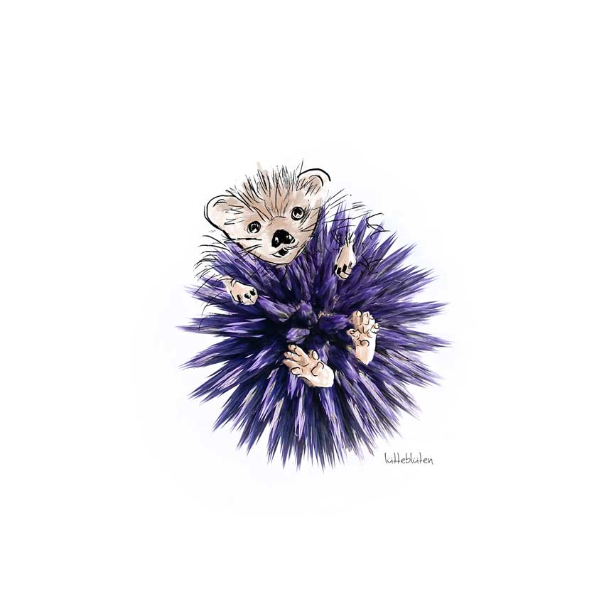 Kunstkarte / Grußkarte "Kugeldistel-Igel" aus der Papeterie von Lütteblüten by Gabriele Ampt.