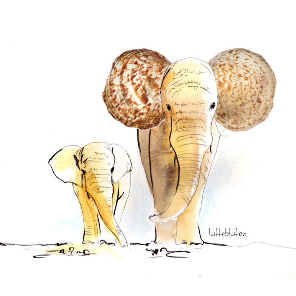 Kunstkarte / Grußkarte "Muschel Elefant" aus der Papeterie von Lütteblüten by Gabriele Ampt.