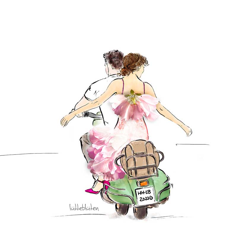 Kunstkarte / Grußkarte "Sonntagsfahrt" aus der Papeterie von Lütteblüten by Gabriele Ampt.