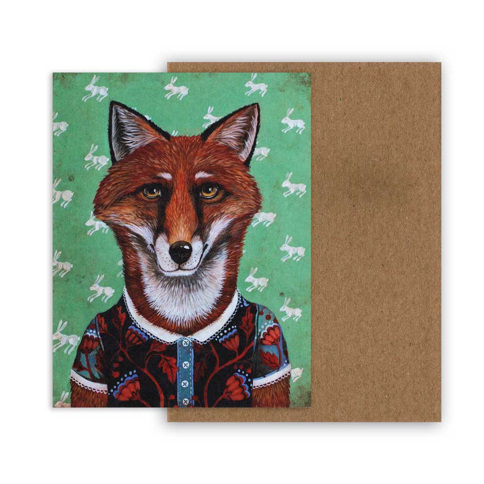 Die Grußkarte "MISS ROSA RED LE FOX" von Hester & Cook. Motiv: Elizabeth Foster.