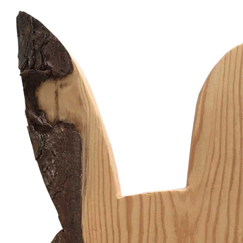 Die Maße der Holzdeko "Hase 3" : Breite 28 cm x Höhe 35 cm x 2 cm.