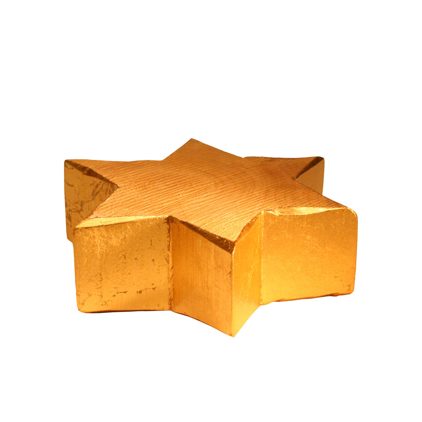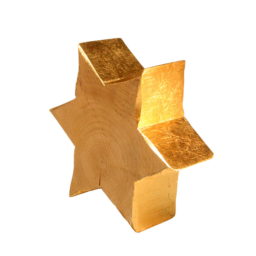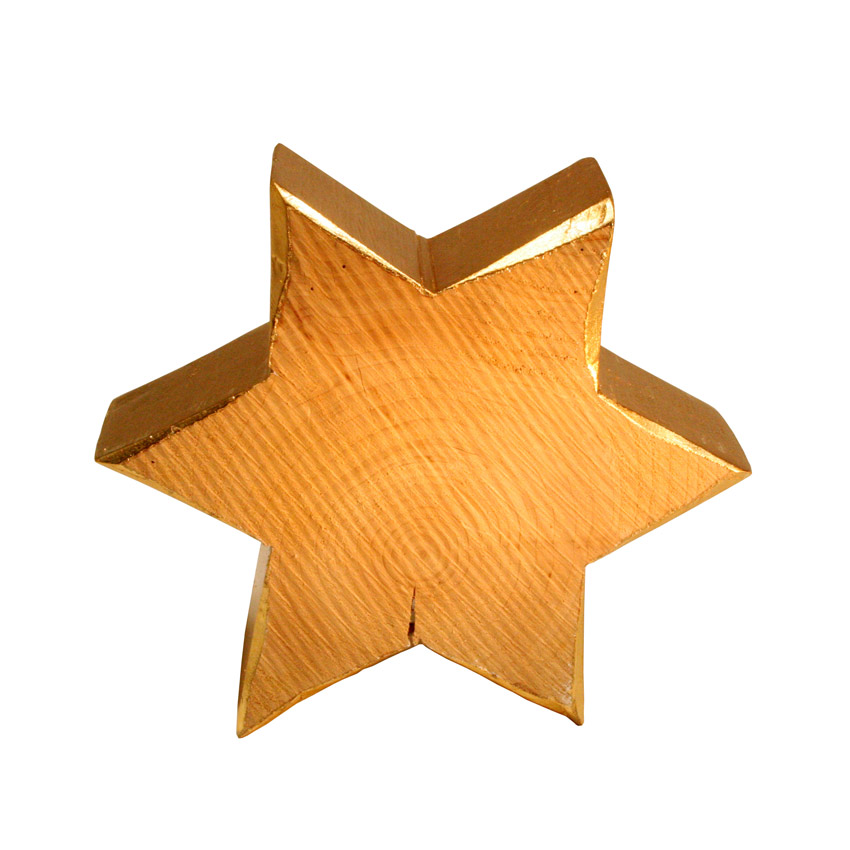 Der Holzstern L 1 mit den Stirnflächen in Vergoldungsoptik aus Schlagmetall.