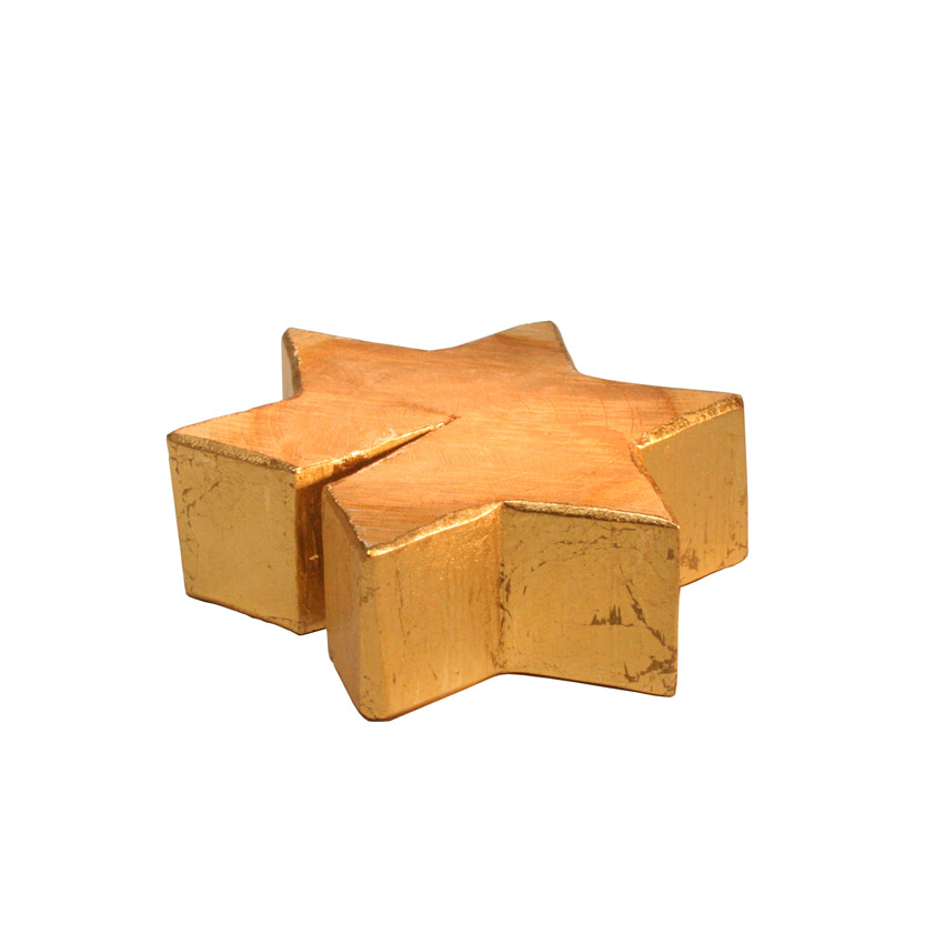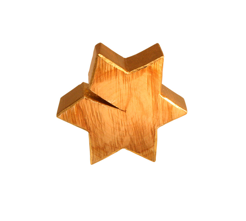 Der Holzstern M 1 mit den Stirnflächen in Vergoldungsoptik aus Schlagmetall.