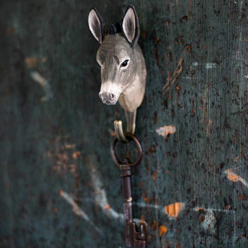 Handgeschnitzter Kleiderhaken mit Eselmotiv