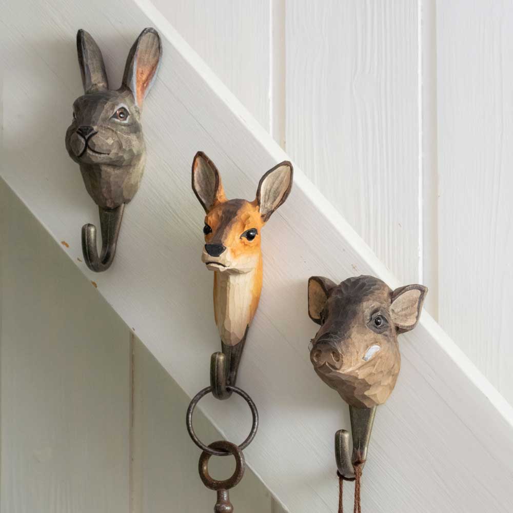 In Kombination mit weiteren Tierhaken – z. B. Hase, Reh oder Fuchs – entsteht eine charmante Galerie der heimischen Waldtiere.