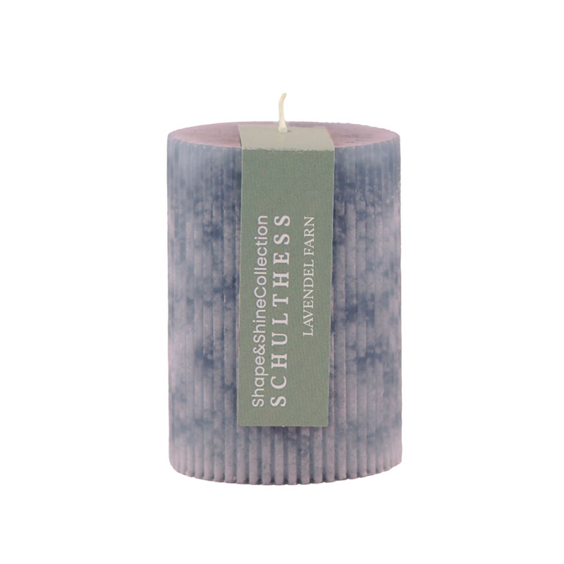 Die Rillenkerze „Lavendel & Farn“ aus der exklusiven Shape & Shine Collection von Schulthess vereint die sanfte, entspannende Kraft des Lavendels mit der klaren, grünen Frische von Farn.