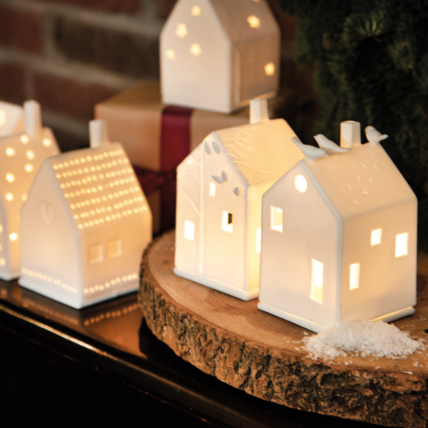 Für die Stadt der Lichter wird jedes Porzellanhaus mit Sorgfalt handgefertigt. Hier gibt es kleine Wohnhäuser, große Stadthäuser und kleine Traumhäuser. Wenn es dunkel wird, leuchten die Fenster und erhellen die Nacht mit ihrem Kerzenschein.