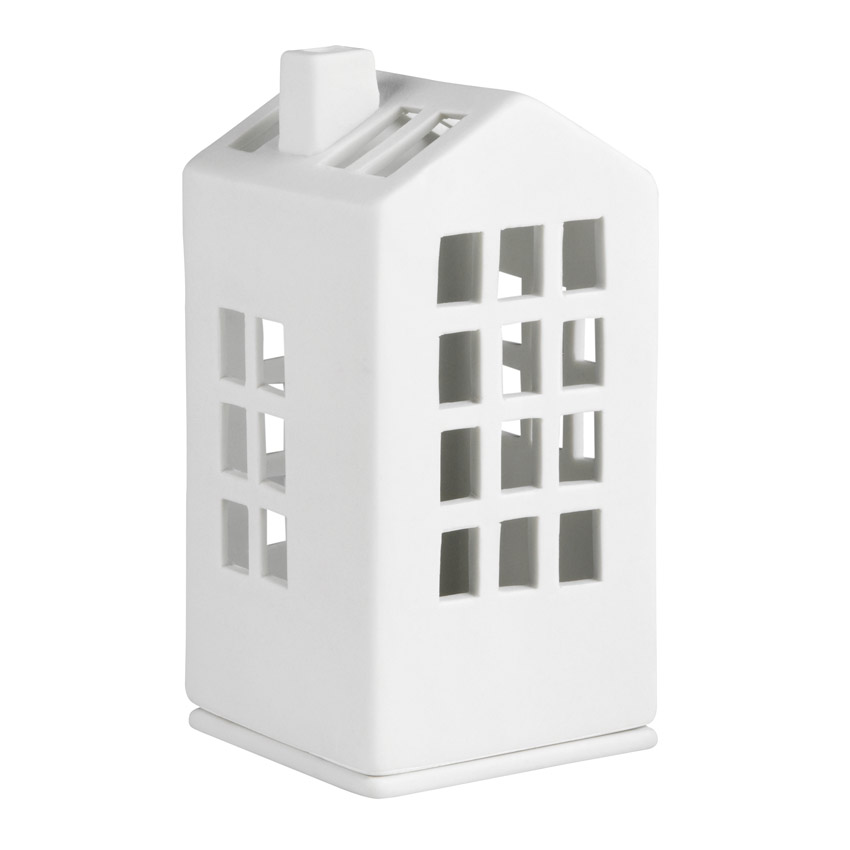 Die Maße: 7 cm x 13 cm x 7 cm. Material: Porzellan, unglasiert, mit Kerzenteller.