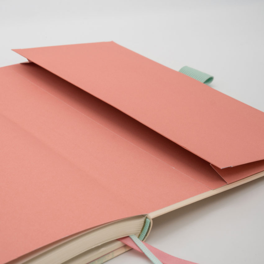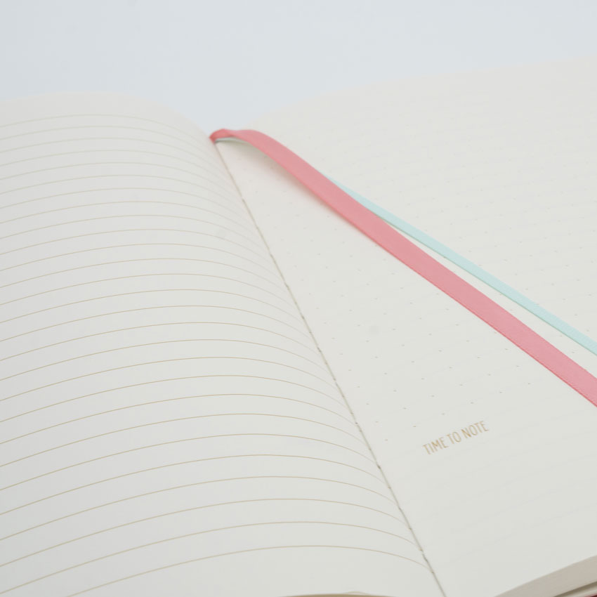 Das elfenbeinfarbene 100g Premiumpapier, liniert und einem dezenten Punktraster, ist auch für Tinte geeignet und der Umwelt zuliebe FSC-zertifiziert. Mit Gummiband, zwei farblich abgestimmten Lesezeichen, einer Stifteschlaufe und praktischem Einsteckfach.