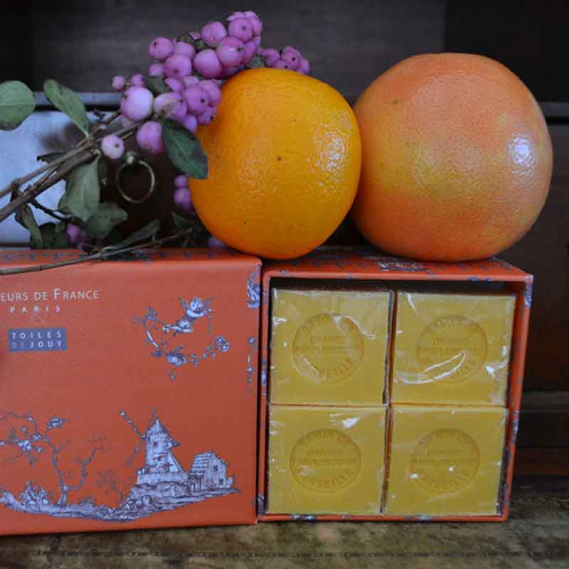 Orange - Grapefruit & Maiglöckchen - 4 Würfelseifen von Senteurs de France