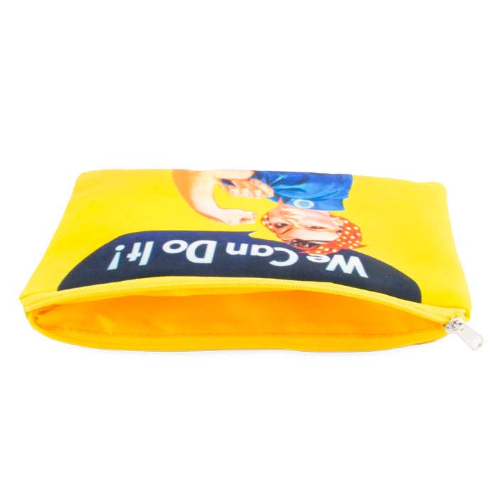 Dieses Federmäppchen / Kosmetiktäschchen bringt pure Power in Ihren Alltag. Der berühmte We Can Do It!-Print verleiht der praktischen Tasche einen rebellisch-positiven Charakter – ideal für alle, die Stil, Ordnung und Statement in einem suchen.