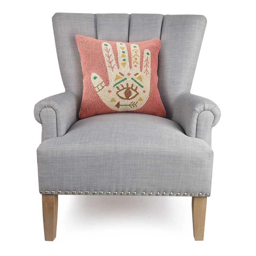 Das handgefertigte, geknüpfte Hakenkissen "Boho Hand" des kalifornischen Designlabels Peking Handicraft ist mit seinen lebendigen Details und Farben für die Ewigkeit gemacht. Dieses funktionale Kissen ist sorgfältig verarbeitet und sehr robust. Hergestellt aus neuseeländischem Wollgarn und mit luxuriösem Baumwollsamt hinterlegt ist es nicht schwer, in Ihrem Zuhause den perfekten Platz für das Statement - Kissen "Boho Hand" zu finden.