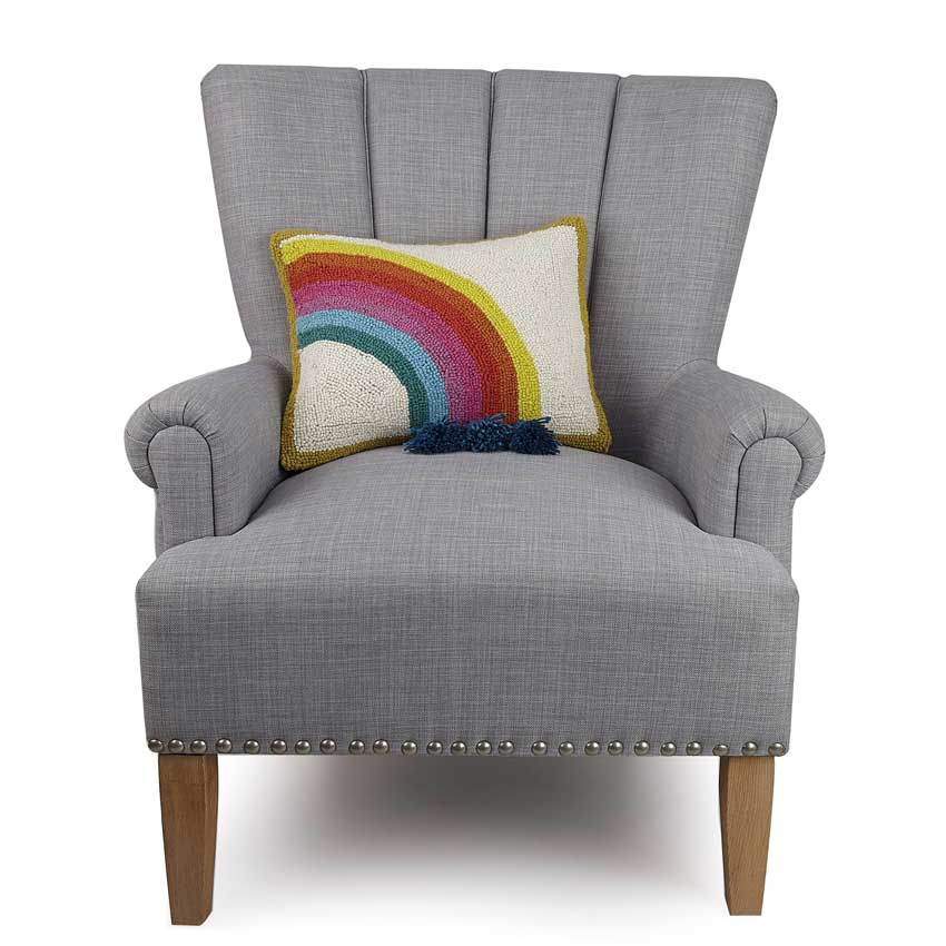 Das Sofakissen / Akzentkissen "Regenbogen 2" kommt inclusive Polyester - Füllung.