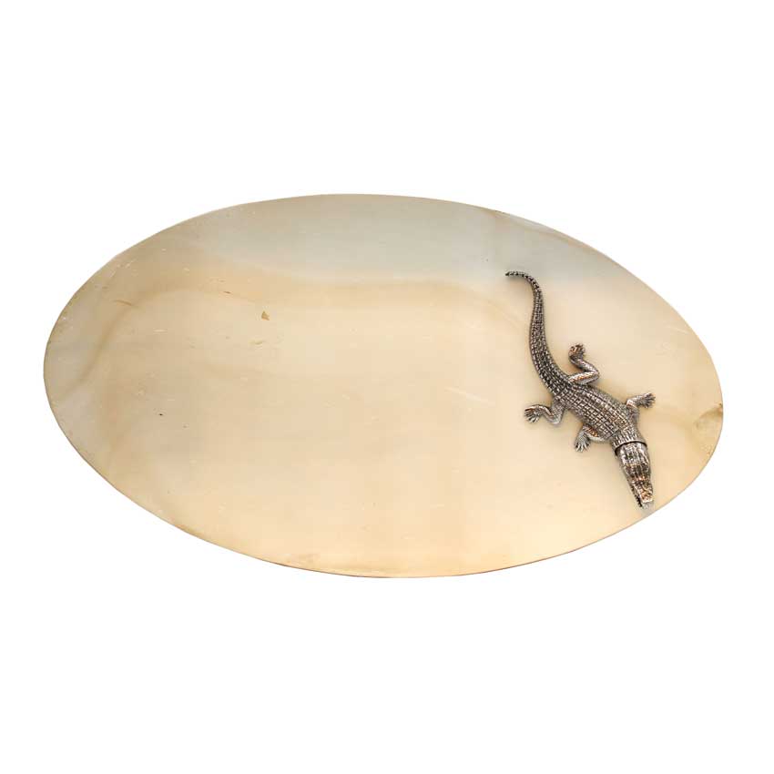 Tablett beige mit Krokodil - Stylische Dekorationsobjekte aus Mangoholz