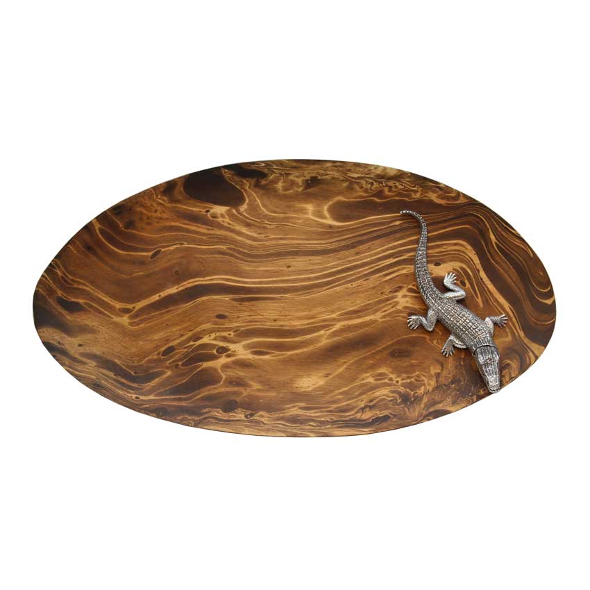 Tablett braun mit Krokodil - Stylische Dekorationsobjekte aus Mangoholz