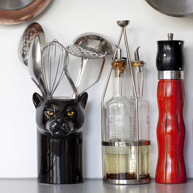 Realistische Tier Designs mit modernem Touch – die großen Blumenvasen und kleinen Vasen, die Kännchen und Becher, die perfekt als Stiftehalter zu verwenden sind und nicht zuletzt die Salz- und Pfefferstreuer in entzückenden Katzen und Hundeformen, sind aus hochwertiger, handbemalter Keramik und zudem Spülmaschinen geeignet.
