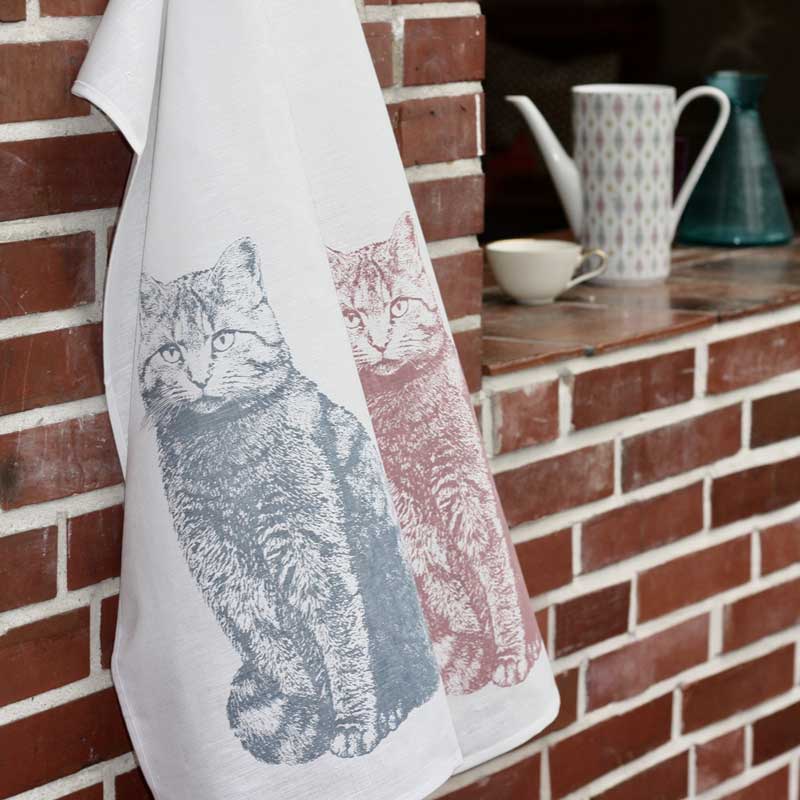 Geschirrtücher von Frohstoff sind aus einem weissen Halbleinen mit dem hochwertigen Siebdruckmotiv "Wildkatze".